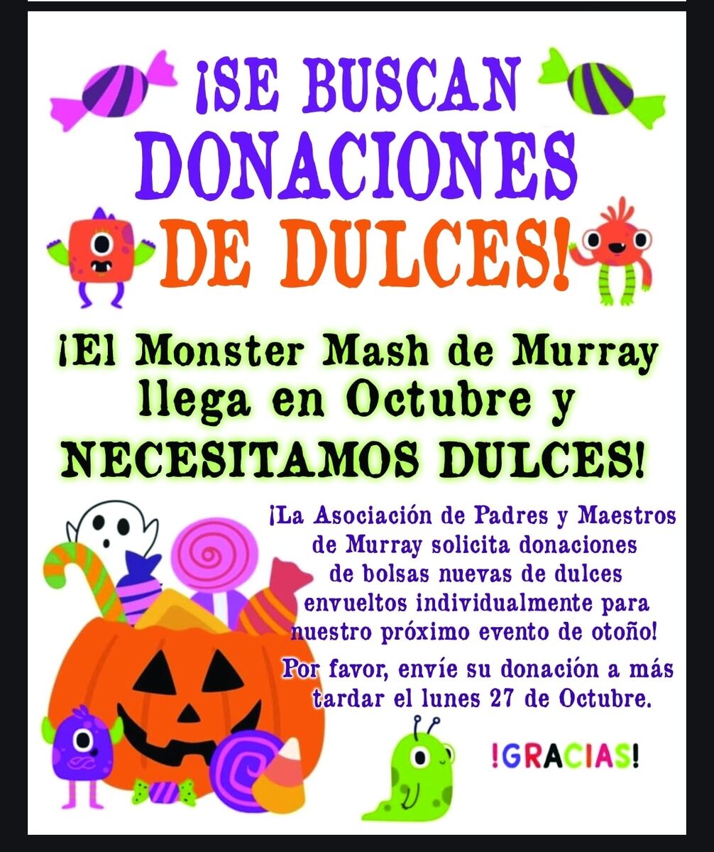 PTO will have a Monster Mash on Thursday, Oct 30th, from 5 to 7pm. We need donations of candy for the games! Admission will be free! More details coming up soon.